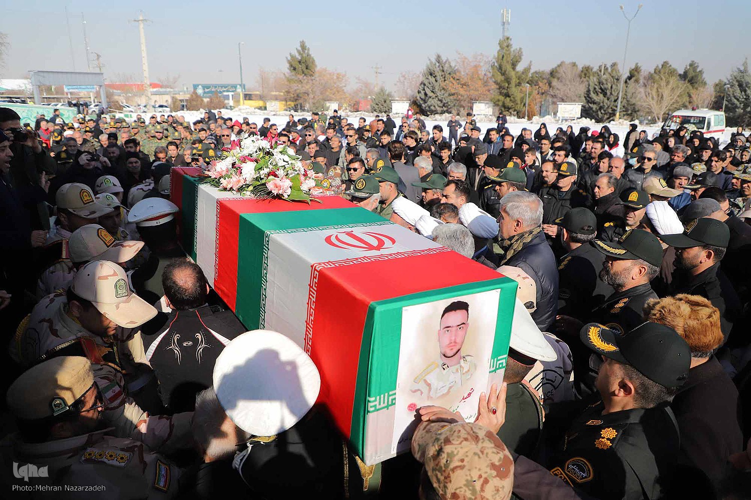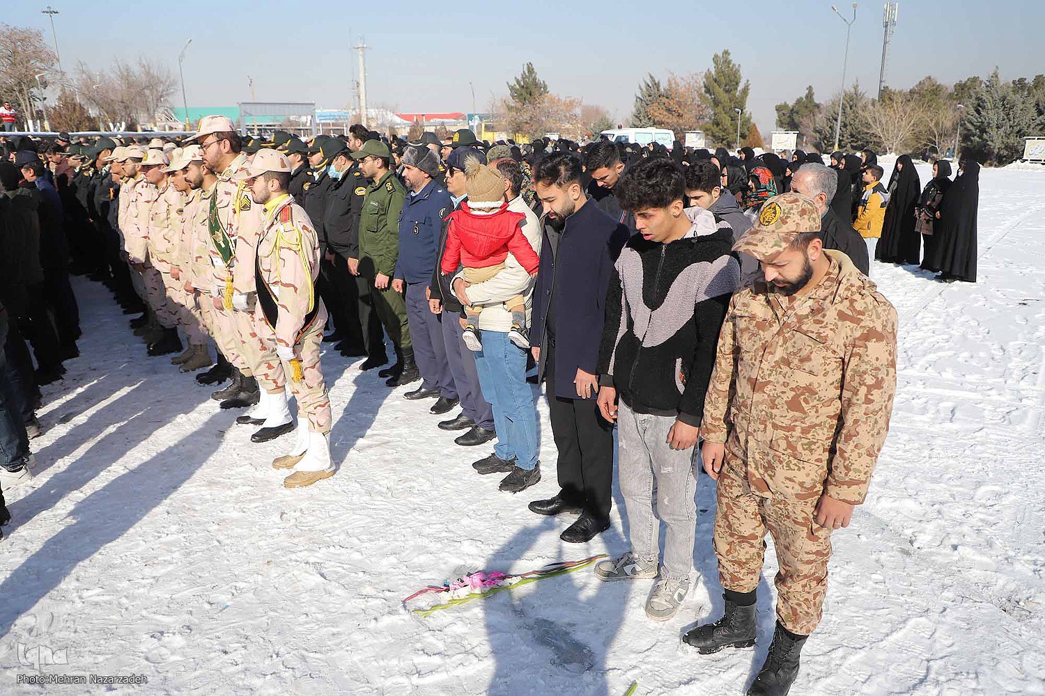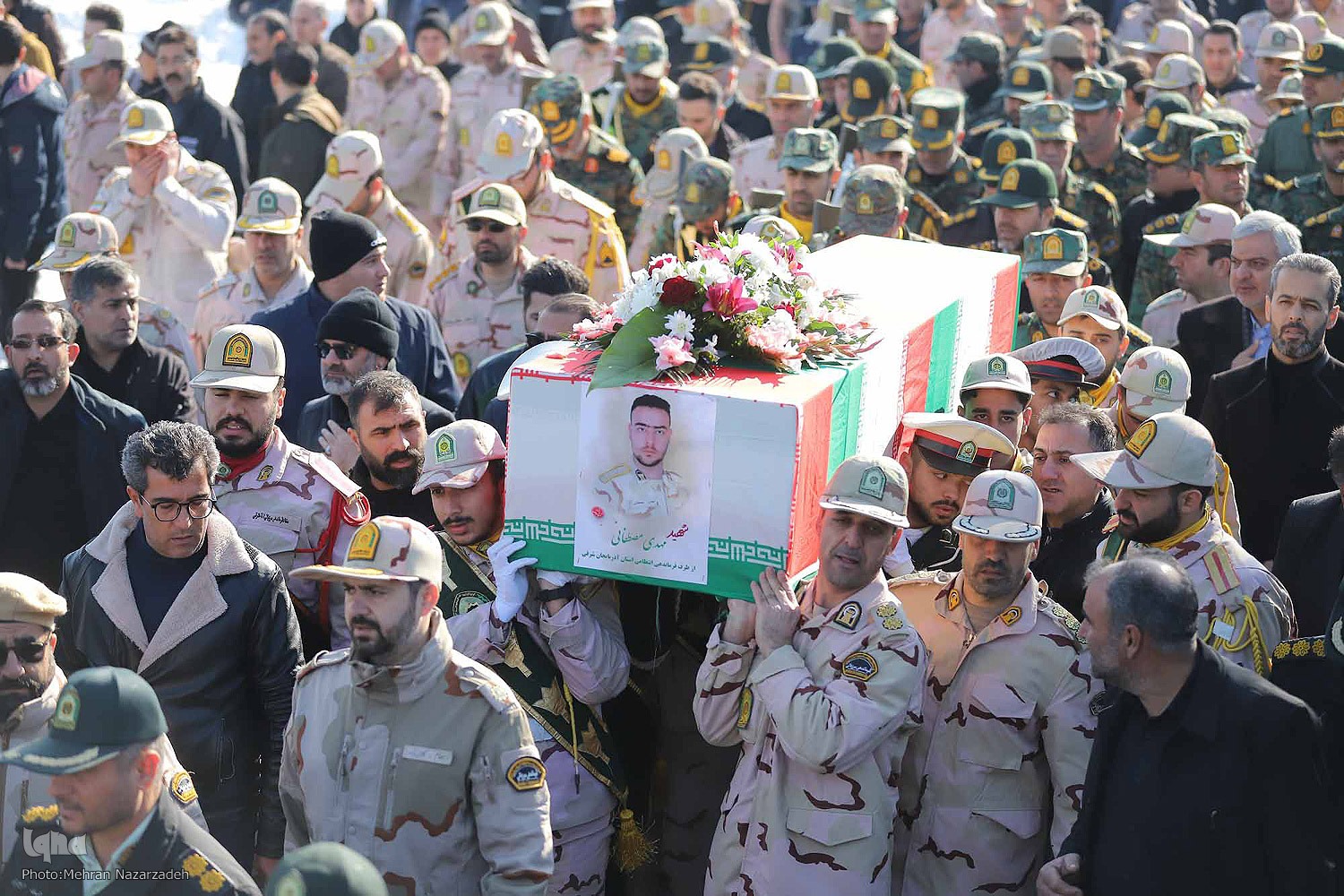 مراسم تشییع و خاکسپاری شهید مرزبانی؛ مهدی مصطفایی با حضور پرشور اقشار مختلف مردم تبریز، فرماندهان نظامی استان، مسئولان استانی و همرزمان این شهید، در گلزار شهدای وادی رحمت تبریز برگزار شد.